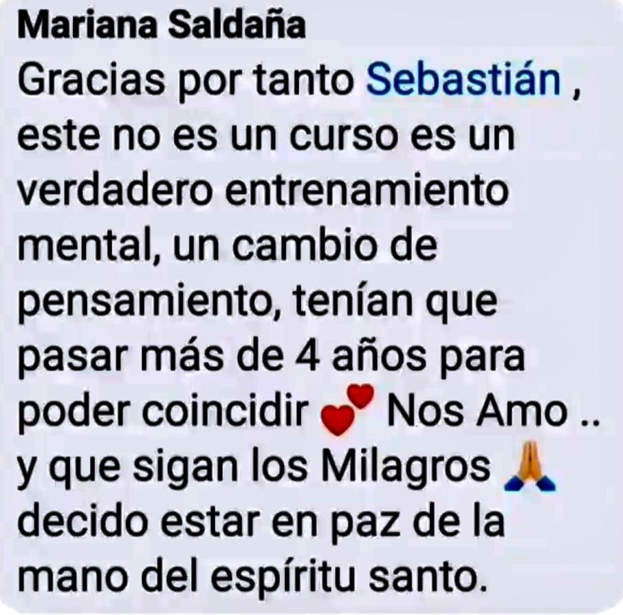Sebastián Mora, conferencista y fundador del Instituto My Entrenamiento Mental. Proyecto educativo dedicado al acompañamiento de terapeutas a que transformen su vida y la de sus pacientes o de cualquier persona que quiera alcanzar la paz, disfrutar su vida y de sus relaciones. Alumno de Jose Luis Molina, terapeuta de Espíritu según la psicoterapia basada en Un Curso de Milagros.